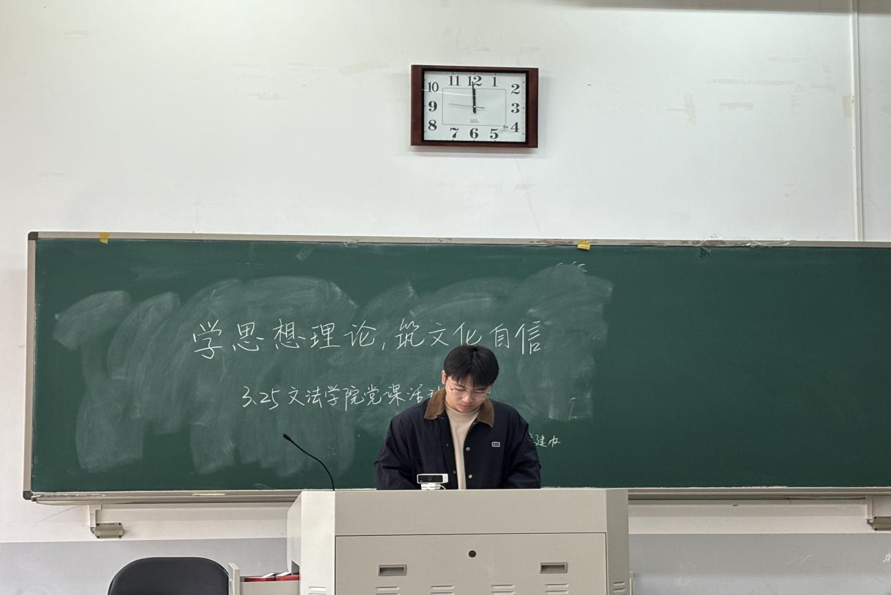 学生党支部于2025年3月25日中午在龙子湖校区教学楼E107开展了以“学思想理论,筑文化自信”为主题的党课活动。