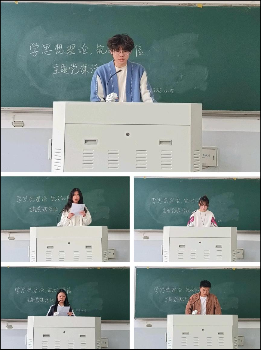 此次党课,学生党员葛子恒、马香、何佳祺、董婉玉、郭中阳依次进行了分享。他们紧扣习近平文化思想,结合个人思考与实际案例,深入阐述了中华优秀传统文化的价值、文化自信的重要意义以及新时代文化建设的方向。他们的发言让学生党员们深刻领悟到文化建设的重要性,进一步明确了传承和弘扬中华优秀传统文化的责任。大家纷纷表示,在未来将会把学习成果转化为实际行动,积极参与文化实践,提升自身文化素养,发挥党员先锋模范作用,为建设社会主义文化强国贡献力量。