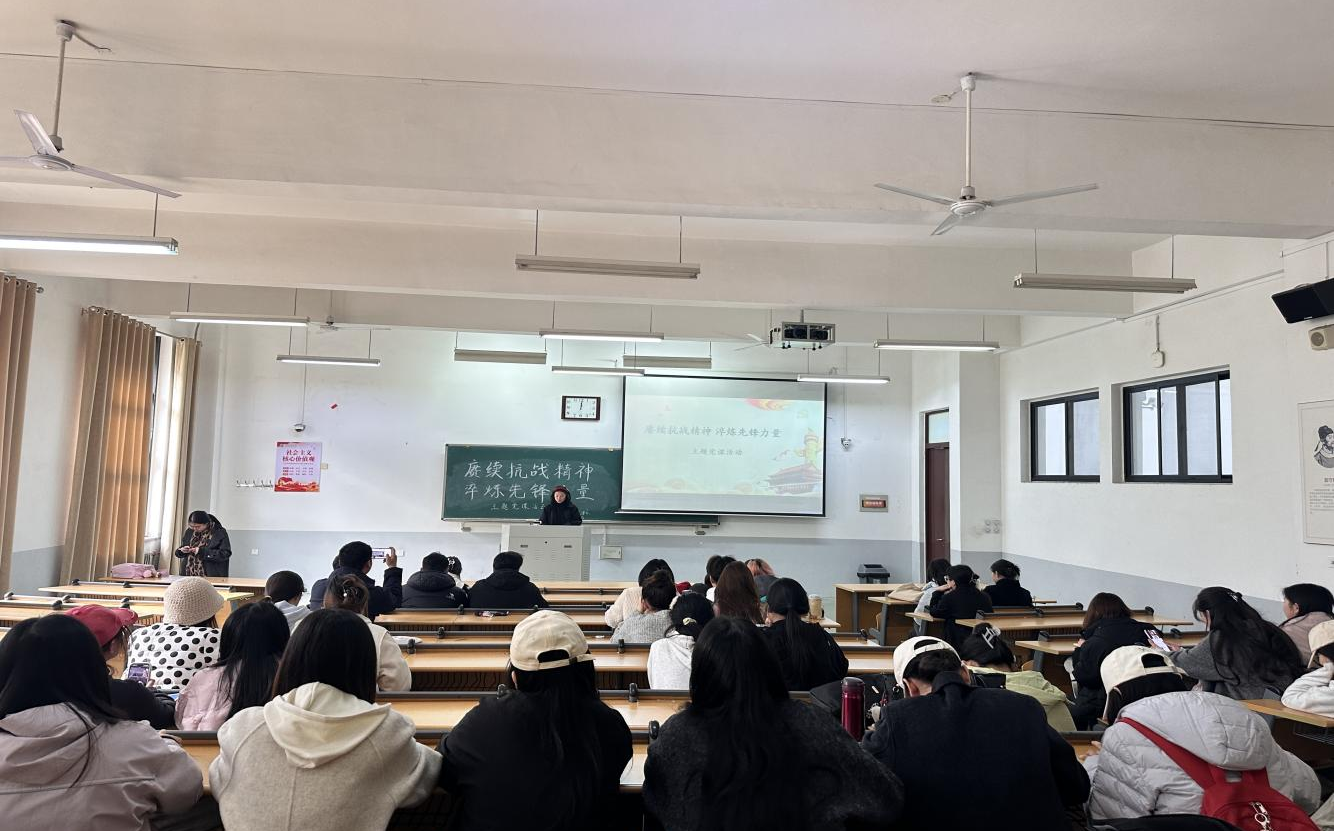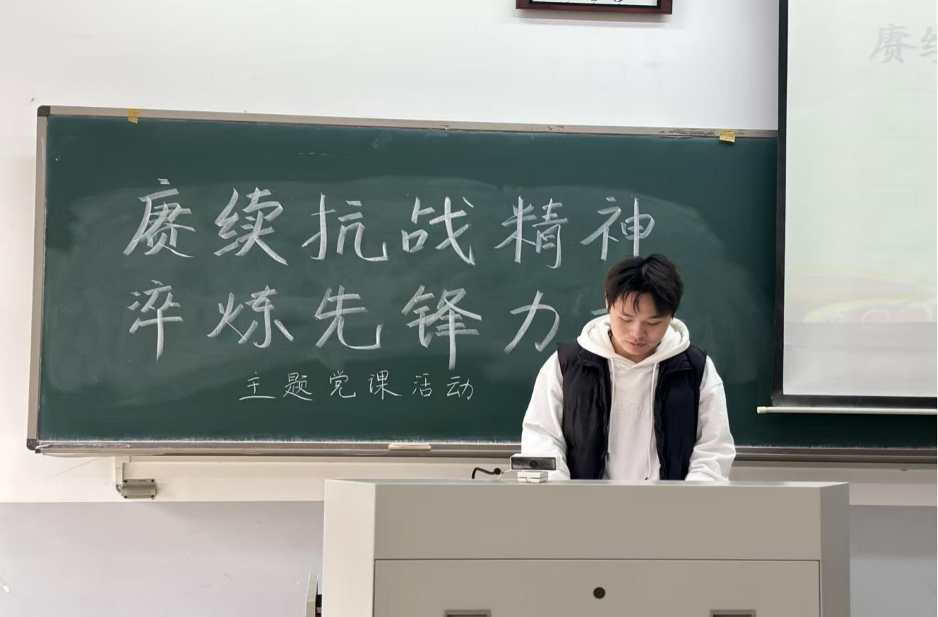 学生党支部于11月11日中午在龙子湖校区繁塔楼E107开展了以“赓续抗战精神,淬炼先锋力量”为主题的党课活动。