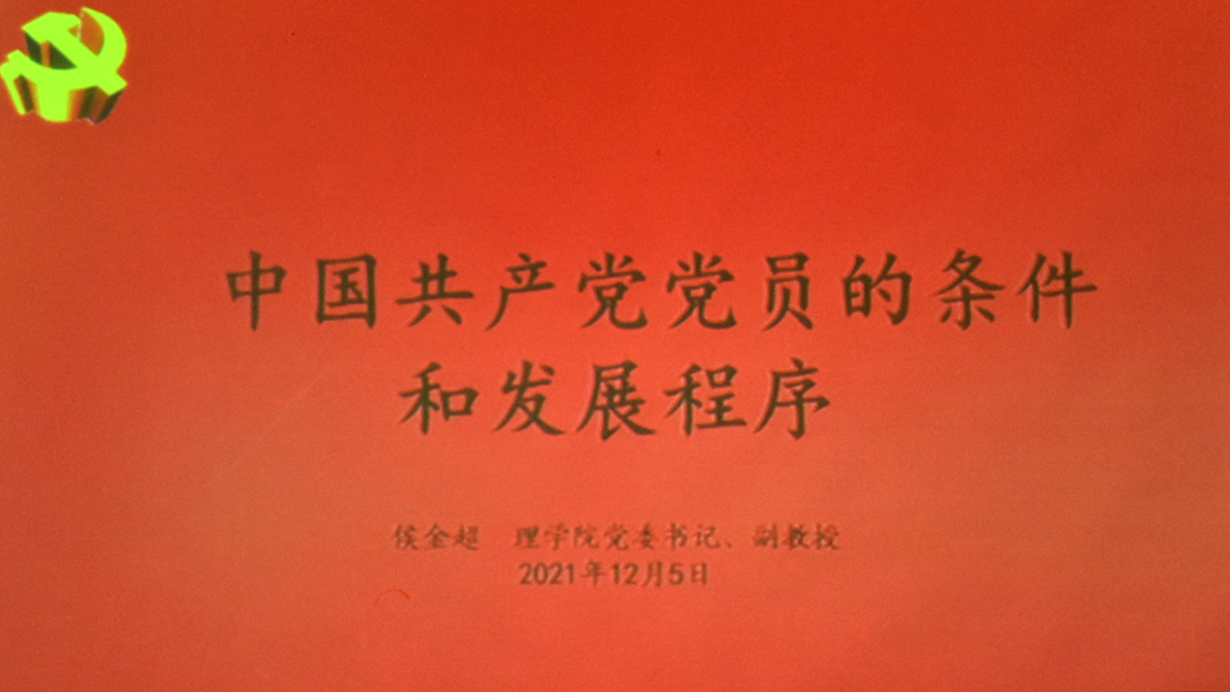 根据时间安排,理学院党委书记侯金超在12月5日下午开始了第四讲《中国共产党党员的条件和发展程序》的讲解。他主要围绕党员的发展流程,依据河南农业大学《发展党员工作实施细则》,强调了承认党的纲领和章程,遵守发展党员的方针和原则的重要性。他提出要加强对入党积极分子和党员的培养教育,并希望积极分子能够事先了解党员的权利和义务,端正入党动机,为党提供优秀的新鲜血液。