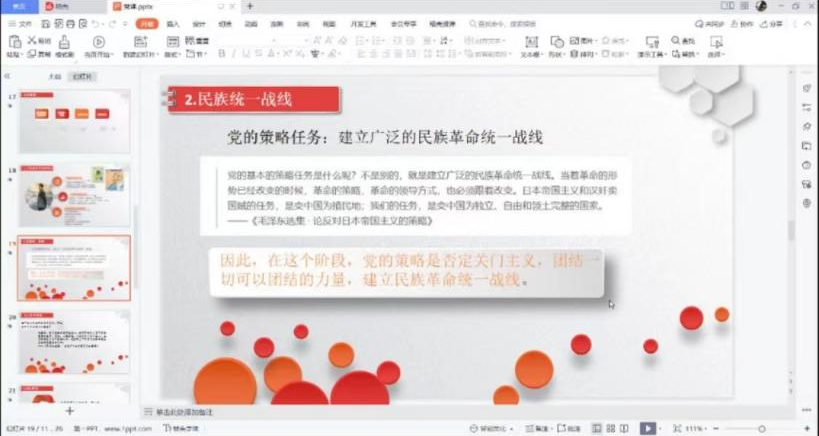 该《报告》深刻地总结了两次国内革命战争的经验教训,对瓦窑堡会议所制定的统一战线的政治路线从理论上给予了马克思主义的完整论述,奠定了中国共产党关于统一战线政策的理论基础。《报告》和瓦窑堡会议,解决了遵义会议以来没来得及解决的党的政治路线问题,给中国人民反对日本帝国主义的斗争指明了方向。最后,为了建筑国家之栋梁,也为各位同学带来了总体思考,在我们的日常生活中,要团结互助,相亲相爱,在人生发生重大变化的时候,也要注意认清自己,从而调整人生目标和工作方法。