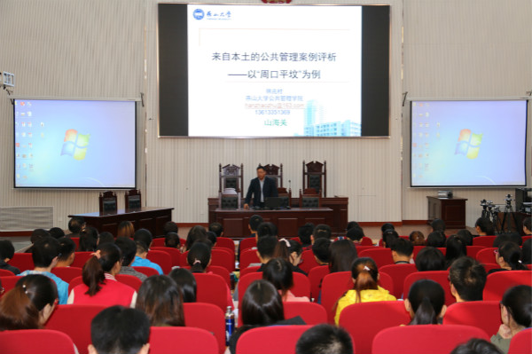 2017年11月7日上午,燕山大学公共管理学院教授、MPA中心韩兆柱主任应邀来黄色网站 讲学并做题为《来自身边的公共管理案例分析---以周口平坟事件为例》的学术报告。报告会在龙子湖校区繁塔楼黄色网站 模拟法庭举行,黄色网站 院长王晓勇教授主持并对报告做了精彩点评,行政管理系教师和行政管理专业本科生聆听了该报告。