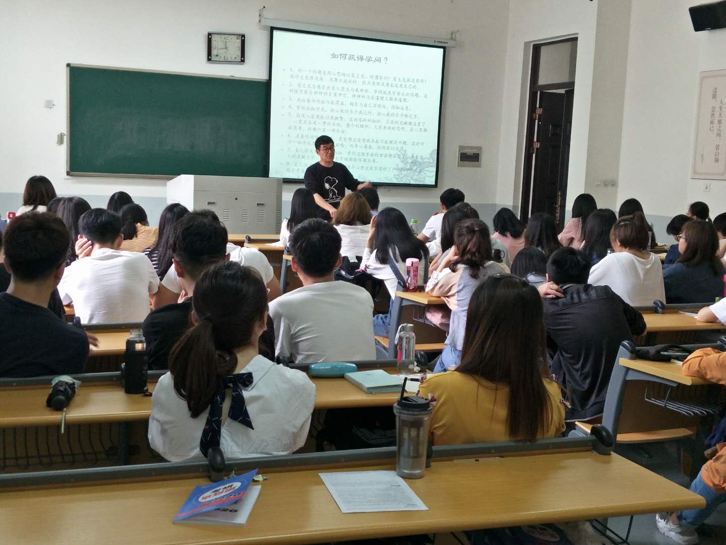 报告会上, 张浩副研究员结合自己的实践经验,用浅显易懂的语言向我们阐述了“何为学问”。首先,张浩副研究员引用梁漱溟先生的话,提出学问就是能将眼前的道理、材料,系统化、深刻化。接着细致的讲述了学问是怎么来的,提出了问题是根苗,大学问像一棵大树,从根苗上发展长大起来,而环境见闻,生活实践,则是它的滋养资料,久而久之自然蔚成一大系统。最后,张浩副研究员引用梁老1928年的著作《如何成为今天的我》,从多角度对“如何做学问”进行了深入浅出的分析,并指出, 对一个问题肯用心思所以有主见,有主见乃感觉出旁人意见与我两样,此后看书听话乃能得益,学然后知不足,并进一步指出,由浅入深便能以简御繁,是真学问便有受用,旁人得失长短一望而知,自己说出话来精巧透辟。报告的最后,张浩副研究员就学生提出的乡村土地制度的政策演进等问题进行了认真回答,同学们均表示受益匪浅。