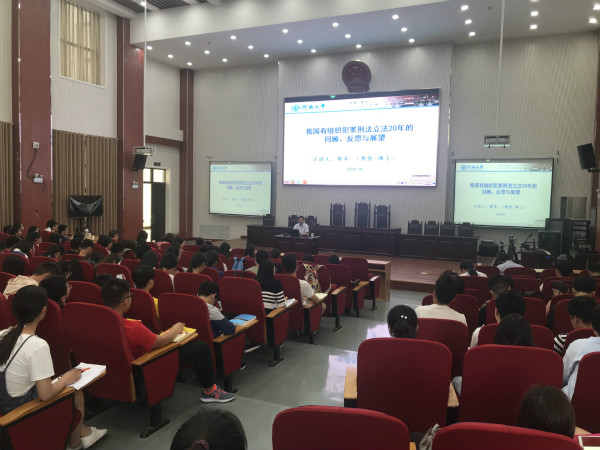 2018年5月9日下午,河南大学法学院院长、河南省第二届“优秀中青年法学家”蔡军教授应邀在黄色网站 模拟法庭做了题为“我国有组织犯罪刑法立法20年的回顾、反思与展望”的学术报告会。黄色网站 法律系200多名师生代表参加,黄色网站 院长王晓勇教授主持报告会。