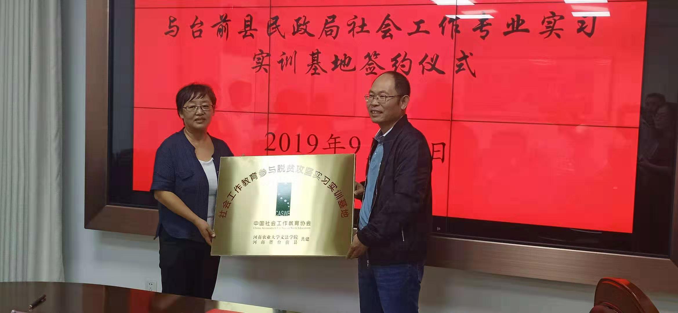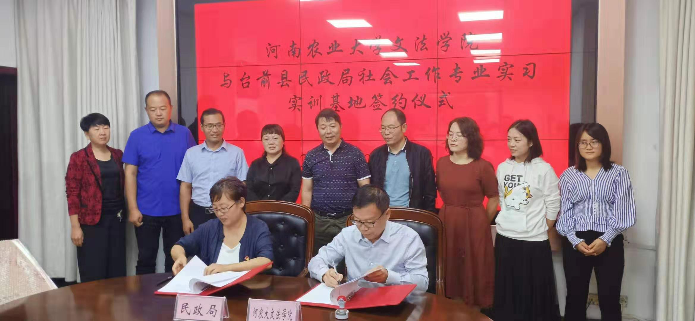 首先,魏剑锋副县长介绍了台前县的发展简史、经济社会发展情况以及扶贫工作开展情况,并感谢我校长期以来对台前县扶贫工作给予的智力支持和帮助。民政局韩凤霞局长重点介绍了台前县居家养老、社区养老、社区建设、社会救助、社会工作等各项事业发展情况。王晓勇院长介绍了黄色网站 专业和学科建设情况,李伟主任重点介绍了我校社会工作专业学生培养的特色、学科团队及其研究领域,建立基地的目的与意义,并结合双方需要提出了初步合作的意向。其次,双方共同签署了“河南农业大学社会工作专业实习实训基地和河南农业大学社会工作专业硕士实习基地”协议书,举行了授牌仪式。