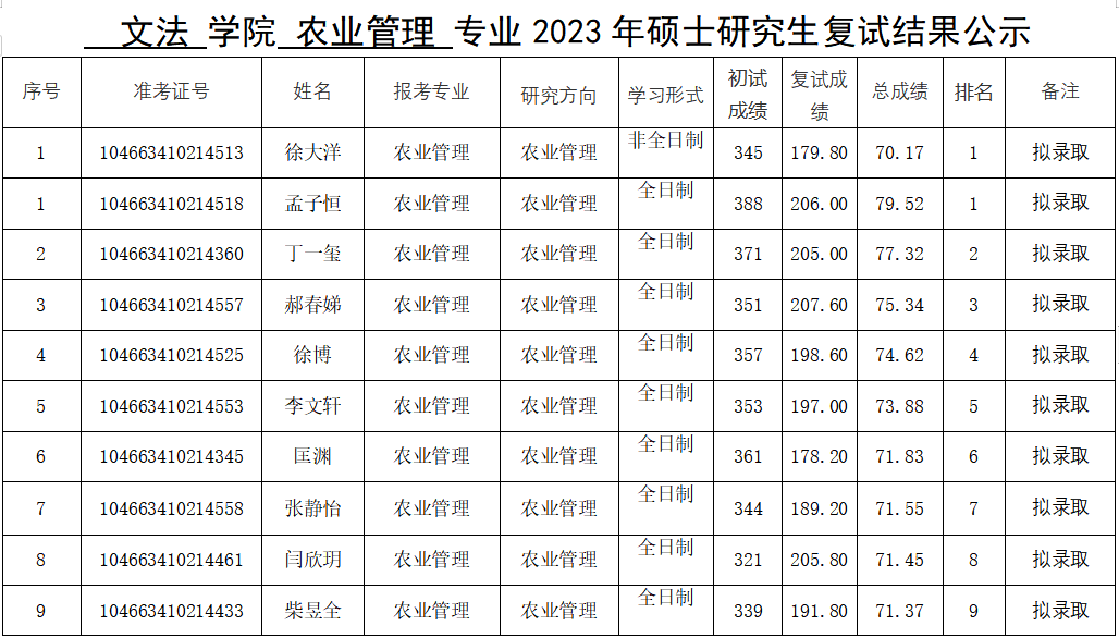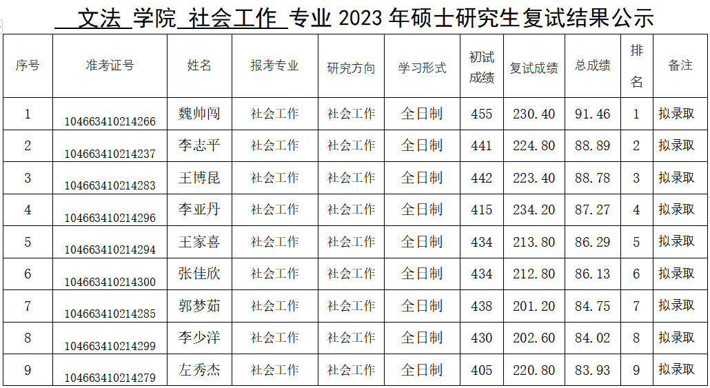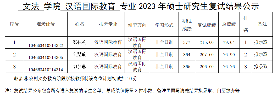 黄色网站 2023年硕士研究生复试结果公示(一志愿)