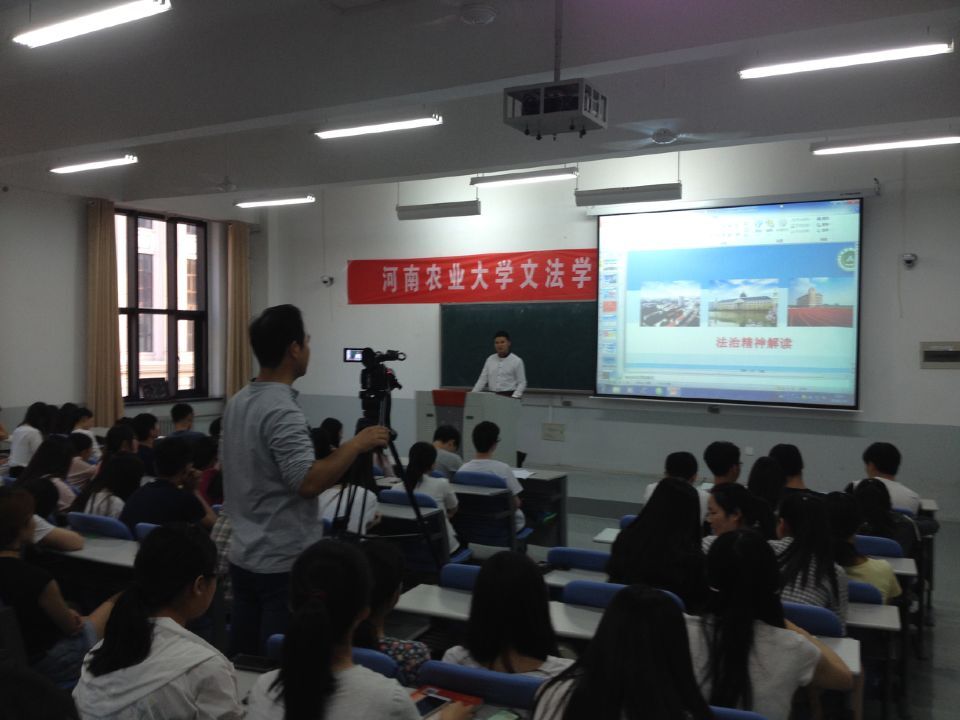 为普及法律知识,提高学生的法律意识,黄色网站 副院长张帅梁于5月24日晚上7:00在龙子湖校区教学楼C202教室为黄色网站 学生作普法知识报告。
