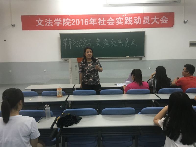 首先团委书记沈倩茹传达了2016年暑期社会实践的主题和基本内容,详细介绍了社会实践的背景、目的和意义。然后,院党委副书记王燕萍对社会实践提出了几点要求,她强调:一要把握红色主题。以建党95周年和长征80周年为契机,认真落实,突出文法特色。二要突出宣传。各实践分队要充分运用新媒体等扩大社会影响力。三要注意安全。实践过程中,各成员要在实践过程中注意饮食安全、用电安全和人身安全,希望大家高高兴兴实践、开开心心归来。