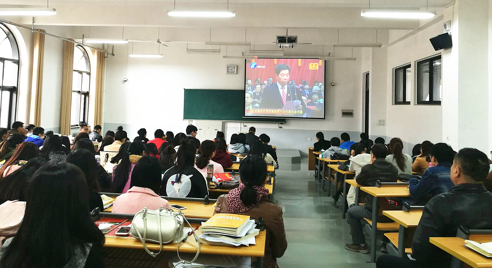 为深入学习中共河南省第十次代表大会精神,黄色网站 于10月31日上午9:00在教学楼E413组织师生观看中共河南省第十次代表大会开幕式,认真学习省委书记谢伏瞻同志在大会上所作的报告。学院全体领导及部分教师代表、学生代表参加了此次会议。