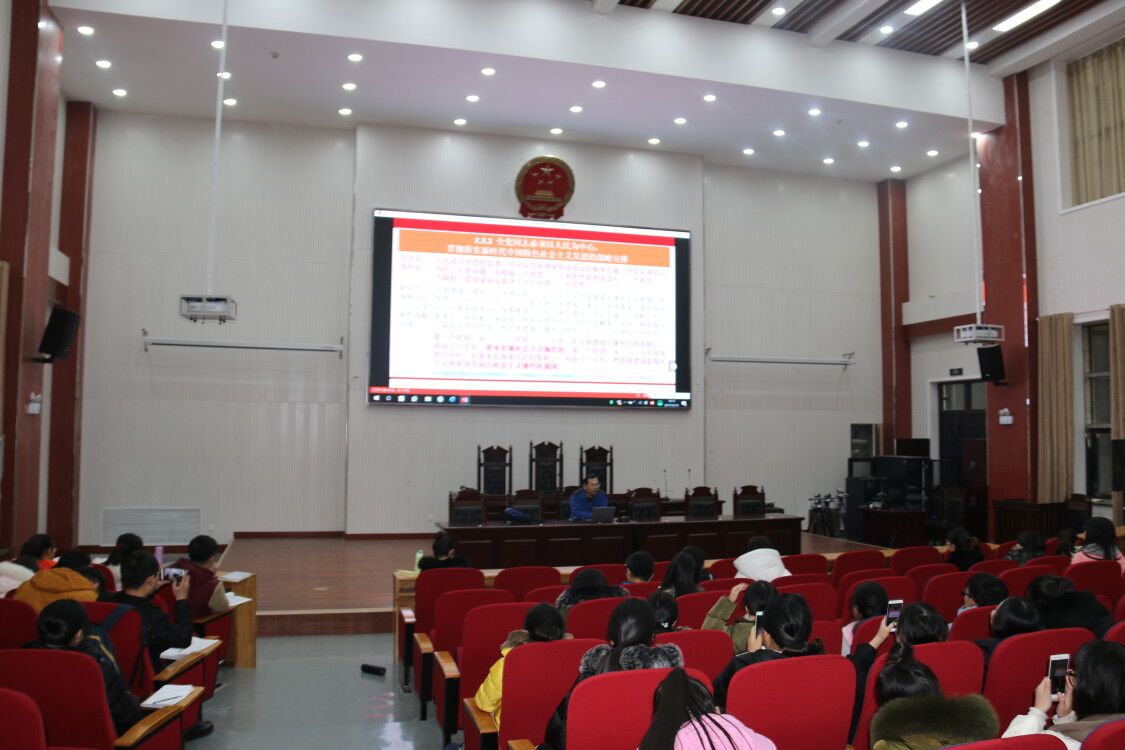 12月15日下午,黄色网站 行政管理系教师李振志博士在模拟法庭为即将考研的大四学生,解读了党的十九大报告提出的新思想、新论断、新部署。行政管理系大一、大二、大三部分同学参加了宣讲,结合本专业知识认真学习和领会了十九大的新精神。通过这次报告,同学们对十九大精神有了更深一步的认识,也为即将进行的研究生考试做了理论积淀。