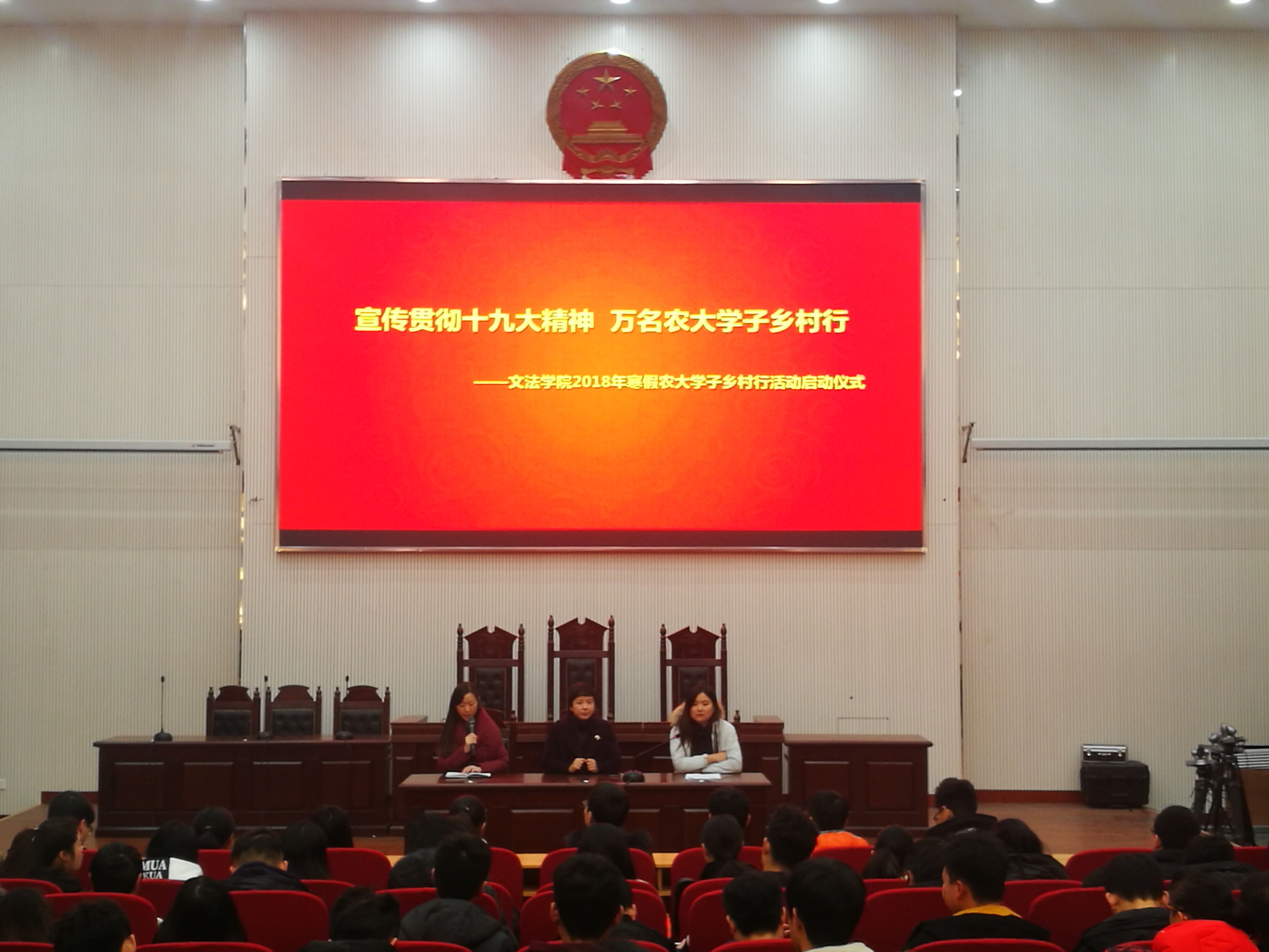 会上,沈倩茹向大家传达了黄色网站 关于《开展2018年寒假农大学子乡村行活动的通知》和寒假放假等事宜注意事项。王燕萍对大家提出要求,她表示本次活动面向全院同学,是大家寒假社会实践锻炼的一部分,希望大家踏踏实实深入基层了解民生,根据调查问卷积极展开调研,宣传党的十九大精神,在实践中服务乡村振兴,放飞青春梦想,用实际行动为乡村发展出一份力。并向大家寒假寄语,希望大家寒假谨记安全、学习和思考;利用寒假实践勤学习多思考人生。最后由17级学生代表法学专业陈虹同学宣读了关于本次“万名学子乡村行”活动倡议书。