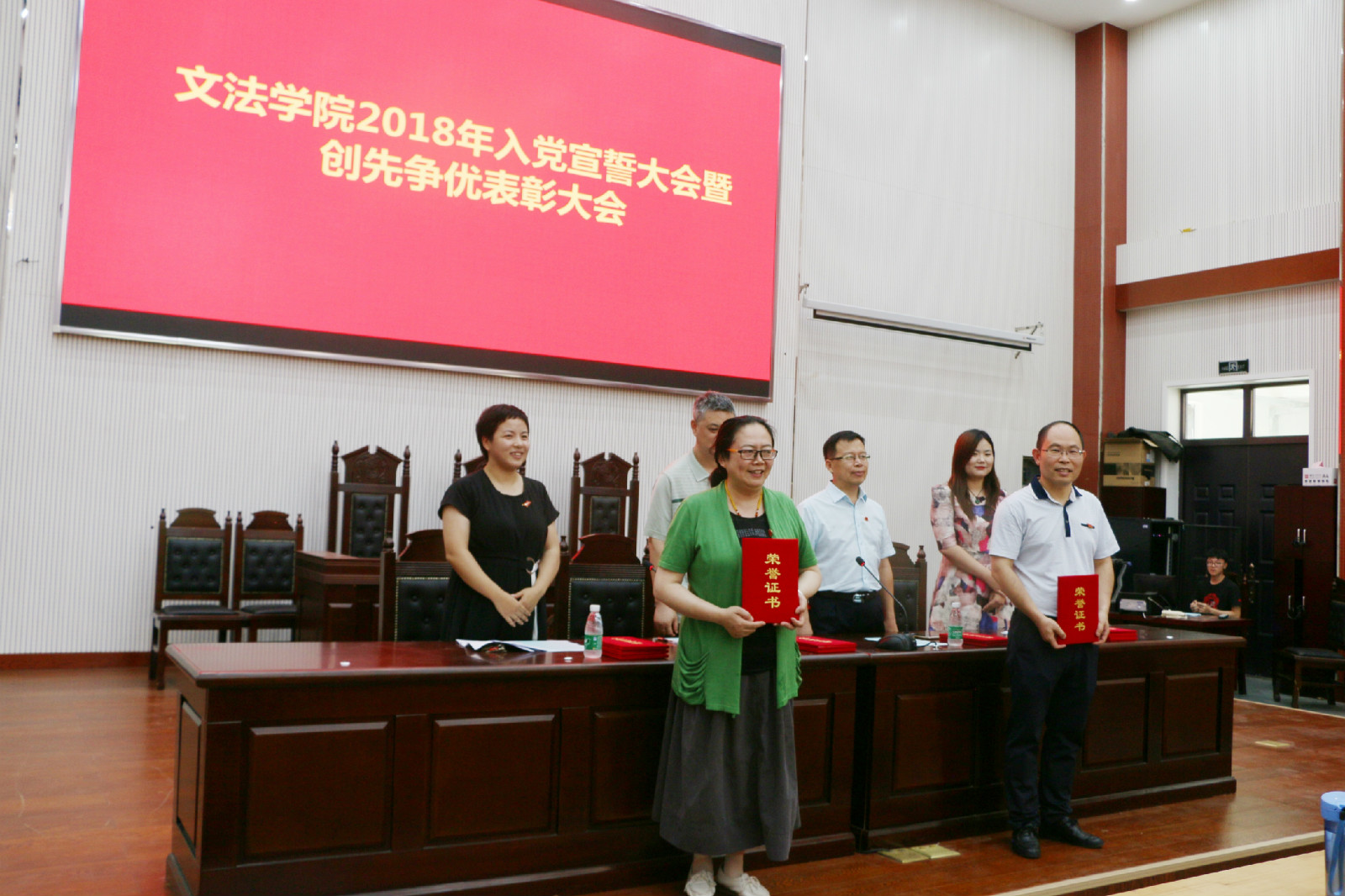 表彰大会在庄严的国际歌中拉开帷幕,接着,黄色网站 党委副书记王燕萍同志宣读《黄色网站 关于表彰优秀党支部、优秀共产党员的决定》,汉语言文学系教工党支部和社会学系教工党支部被评为“优秀党支部”,程春丽等10名师生被评为“优秀共产党员”;接着,与会领导为优秀党支部代表、优秀共产党员颁奖,沈倩茹同志带领新党员面向党旗进行了入党宣誓,老党员重温了入党誓词。随后,新党员代表、入党积极分子代表分别上台发言。最后,院党委书记李培玉同志发表讲话,对新党员表示祝贺并提出了要求。