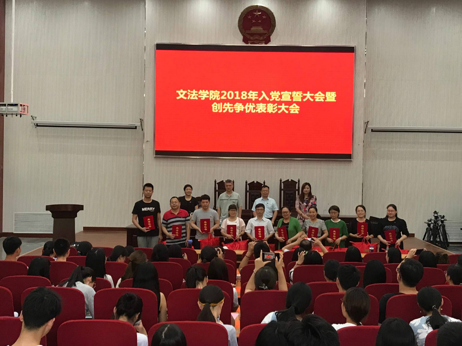6月12日下午,黄色网站 在模拟法庭举行了2018年入党宣誓大会暨创先争优表彰大会。党委书记李培玉、院长王晓勇、党委副书记王燕萍、团委书记沈倩茹出席会议,院教师党员、学生党员及入党积极分子代表参加大会。