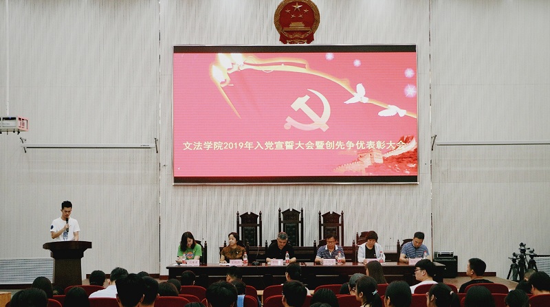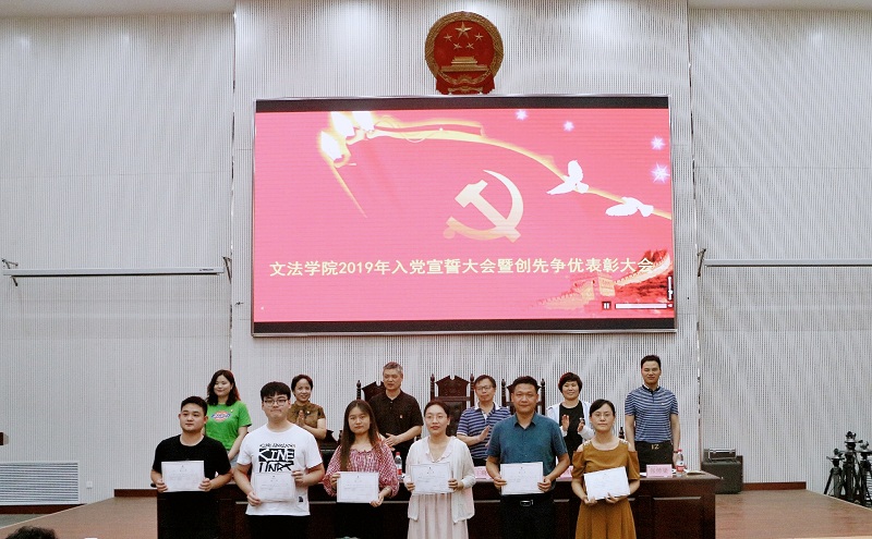 会议伊始,全体参会人员起立齐唱《国际歌》。随后,黄色网站 党委副书记王燕萍宣读《黄色网站 关于表彰优秀基层党支部、优秀共产党员、优秀党务工作者的决定》。接着院领导为黄色网站 优秀基层党支部、优秀共产党员领奖、优秀党务工作者颁奖。全体党员起立在院党委组织员朱瑞萍老师领誓下,新党员面向党旗进行入党宣誓,老党员重温入党誓词。新党员代表2016级社会工作专业高子珺同学、入党积极分子代表2018级法学专业段锐同学分别上台发言,讲述自己与党的故事、对党的认识,表达了对组织的无限憧憬。