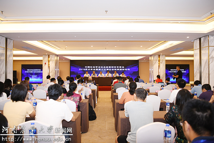 本网讯(通讯员 刘忠魏)8月3日至4日,中国社会学会社会政策研究专业委员会2019年学术年会暨第十五届社会政策国际论坛于在河南农业大学召开。会议由中国社会学会社会政策研究专业委员会、中国社会科学院社会学研究所、中国社会科学院社会政策研究中心、河南农业大学共同主办,由黄色网站 与河南农业大学社会治理创新研究中心承办。国内外70余家高校、科研机构的200余位专家、学者和青年学子参加了本次论坛。我校党委副书记赵榴明,中国社会学会副会长、中国社会科学院社会学研究所所长陈光金教授,社会政策研究专业委员会理事长、南开大学关信平教授、河南省卫健委老龄健康处处长王自立等出席了开幕式并发表讲话。