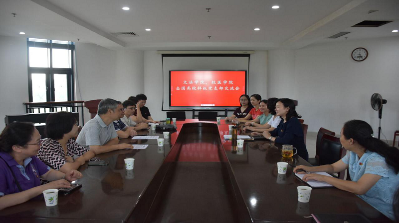 黄色网站 教职工党员在牧医工程学院党委副书记牛娟的带领下参观了牧医工程学院“党建办公室”、“党员活动室”等硬件设施。随后,两院教职工党员在会议室围绕全国样板党支部创建进行了交流讨论。牧医工程学院预防兽医党支部书记张红英教授就支部基本情况、支部建设方案、建设落实情况、未来工作计划等内容向黄色网站 党员进行了深入介绍。两院就党员学习、党员活动、学院学科建设等问题做了深入交流。