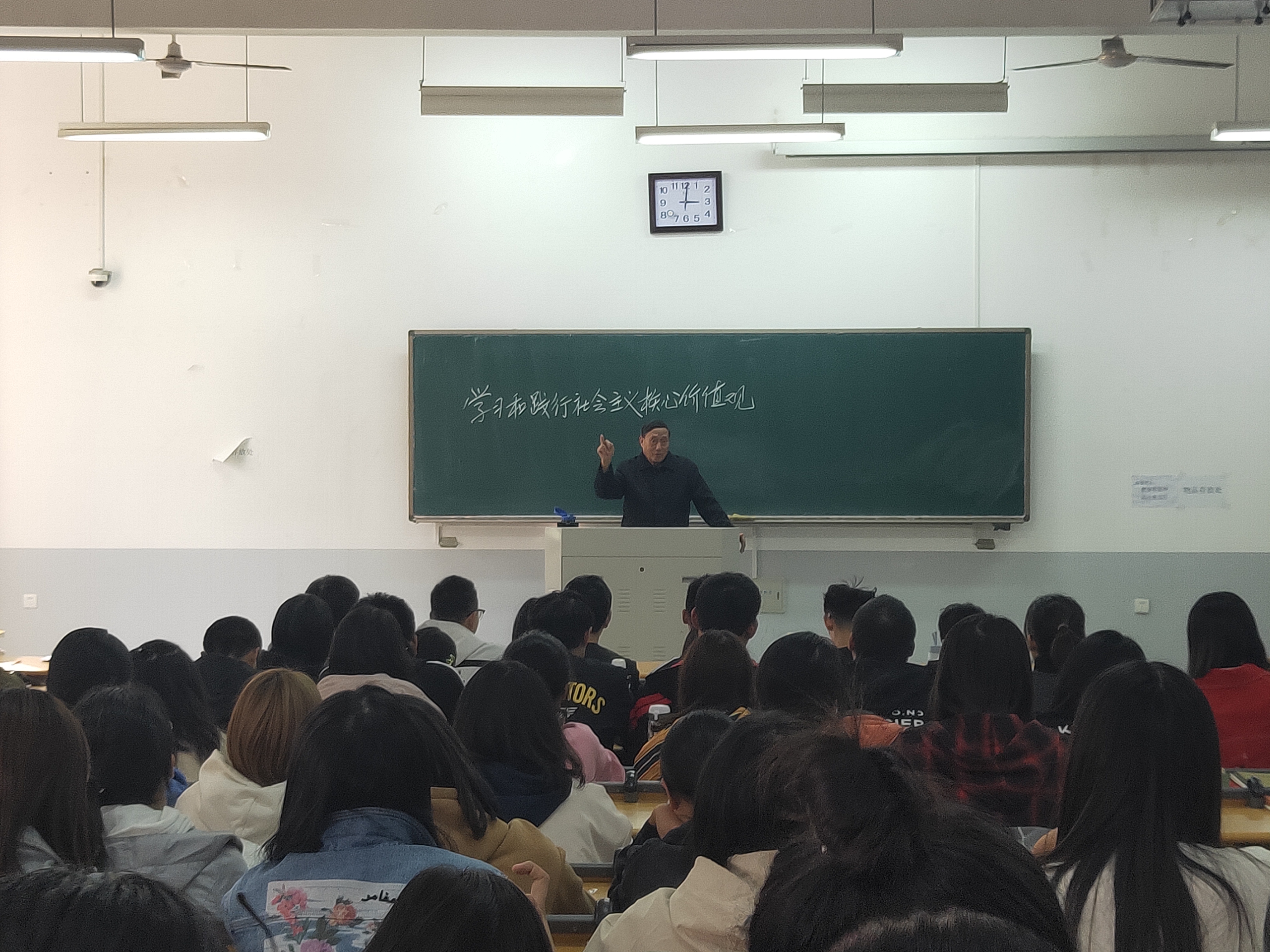 会议伊始,杨明亮首先提出青年学子要从国庆观礼中深切体会到先辈的奉献和牺牲,更要心存感恩、热爱劳动、关心国家,激发学习的无限动力。然后,他围绕中央对于社会主义核心价值观的论述,教导学生要磨炼自我,以核心价值观为人生导向,勇于担当民族复兴大任。接着,杨明亮又从三个层次深入阐述了社会主义核心价值观,强调当代大学生的敬业就是学习。最后,他提出时代对青年学子的六个要求,要树立远大理想、热爱祖国,担当时代责任、勇于砥砺奋斗、练就过硬本领、锤炼品德修养。