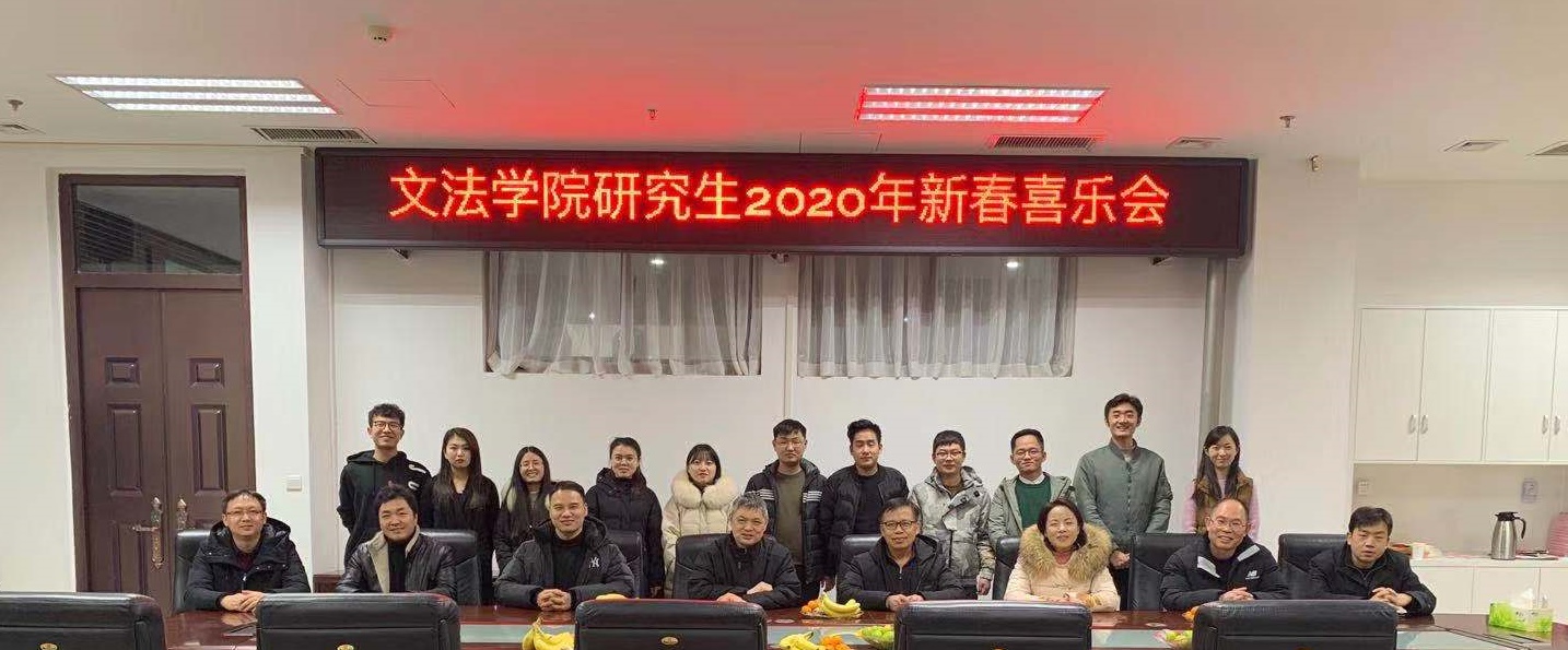 于1月13日在繁塔楼A座310学院会议室举办研究生2020年新春喜乐会,学院党委书记李培玉、院长王晓勇、党委副书记王燕萍、副院长张帅梁,各位研究生导师、班主任以及19级研究生参与此次活动。