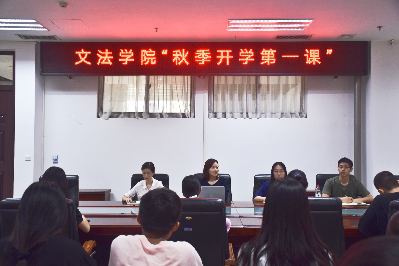 8月31日下午,为帮助学生适应疫情期间的大学生活,尽快投入学习状态,院党委书记牛娟在学院会议室为全体学生上了“秋季开学第一课”,全院学生通过现场聆听和观看网络直播的形式开启了新学期的生活,院团委副书记赵蕊、副科级组织员朱瑞萍和辅导员王鹏举参加了会议,会议由朱瑞萍主持。