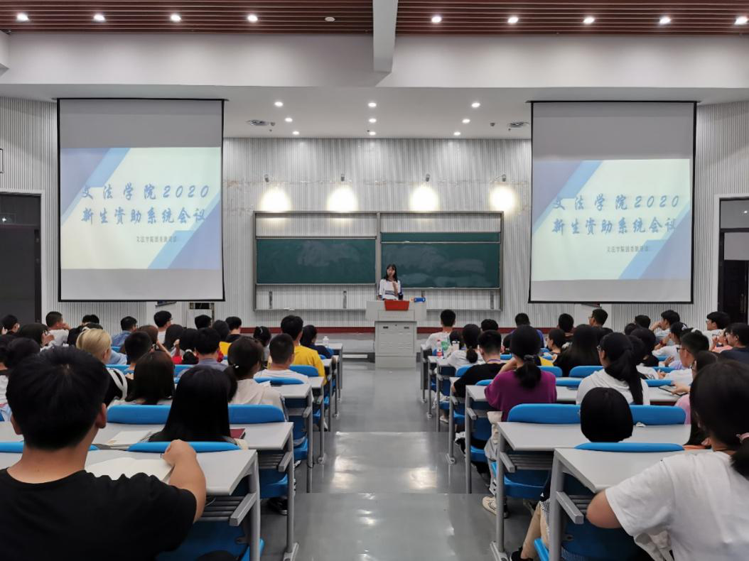 2020新生资助政策宣讲会,院团委助贷部委员、班级助理员和全体2020级新生参与本次会议。