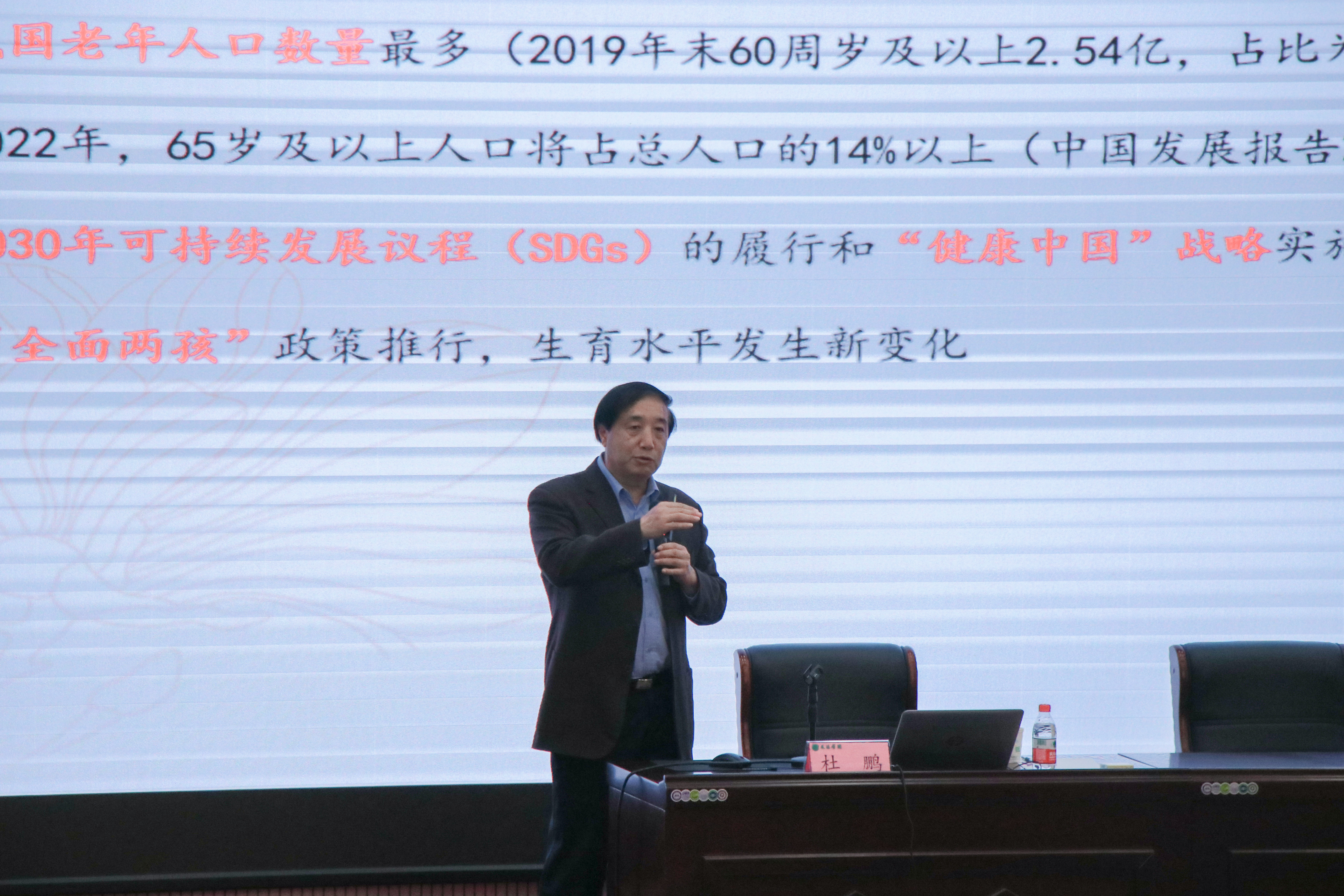 “繁塔论坛”开讲了,首期走进论坛的是中国人民大学副校长、老年学研究所所长杜鹏教授,他就《人口老龄化与老龄社会治理》这一问题为学院师生做学术报告,报告会由副校长尚富德主持,学院领导班子和部分师生代表参加会议。