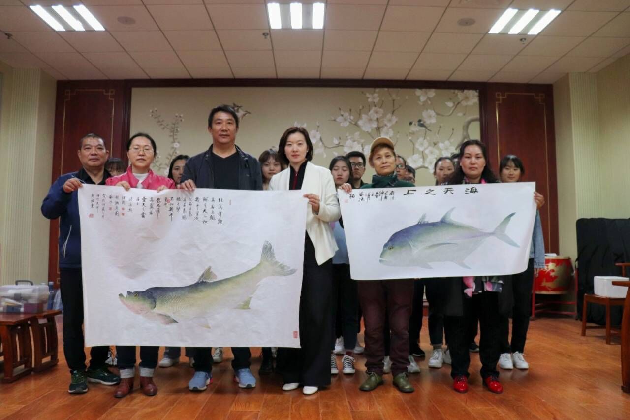 艺术中心举办主题为“鱼拓•碧波游曳的妙影”之繁塔雅集专题活动,特别邀请千岛湖中国鱼拓优秀作品展金鳞奖获得者、中国渔业协会鱼拓专业委员会理事、黄淮学院艺术学院客座教授谷冰来院进行鱼拓文化普及与趣味教学,学院师生代表参与此次活动。