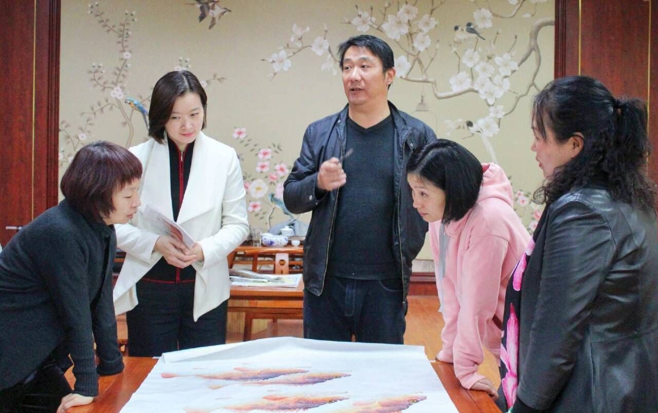 谷冰进行鱼拓文化普及与趣味教学