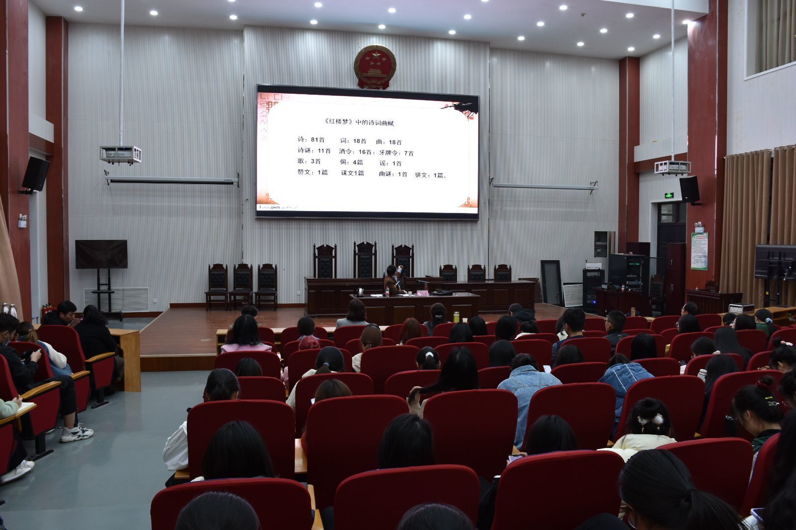 师生带来一场题为《红楼梦与人生》的学术报告。学院党委书记牛娟、院长王晓勇、党委副书记余果参加会议,报告会由院长王晓勇主持。