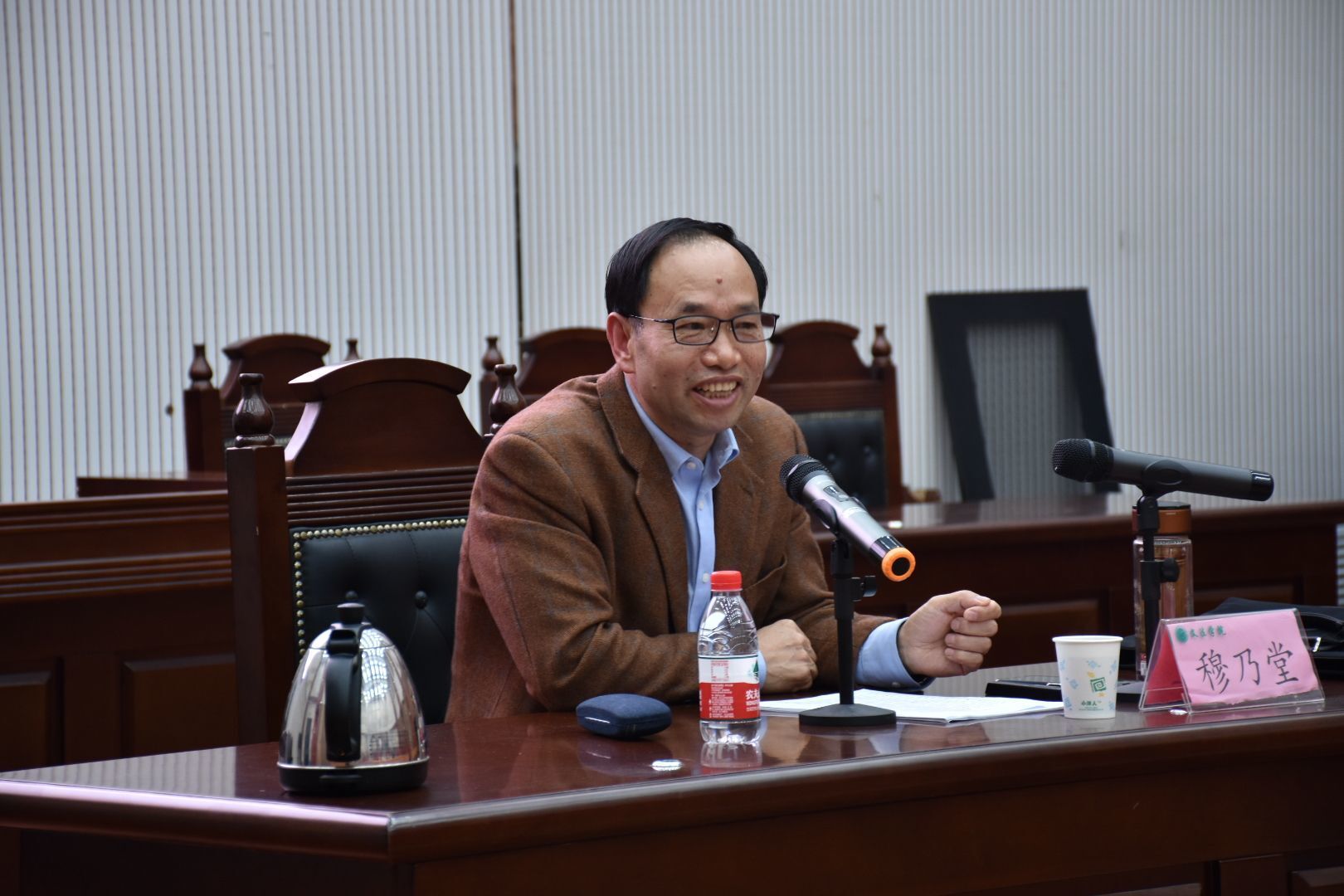 在报告中,穆乃堂首先从《红楼梦》的社会地位、历史影响、学者评价三方面引入,以文坛地位、历史人物对《红楼梦》的喜爱为例,阐述出研读《红楼梦》的重要性。接着,穆乃堂以人物名字的寓意为切入点,就其展现的人物命运、文化底蕴为重点作出阐述。他认为:“《红楼梦》是一个百科全书,研读《红楼梦》就是研读社会,不同阶层都能在其中找到自己的点滴感悟。”
