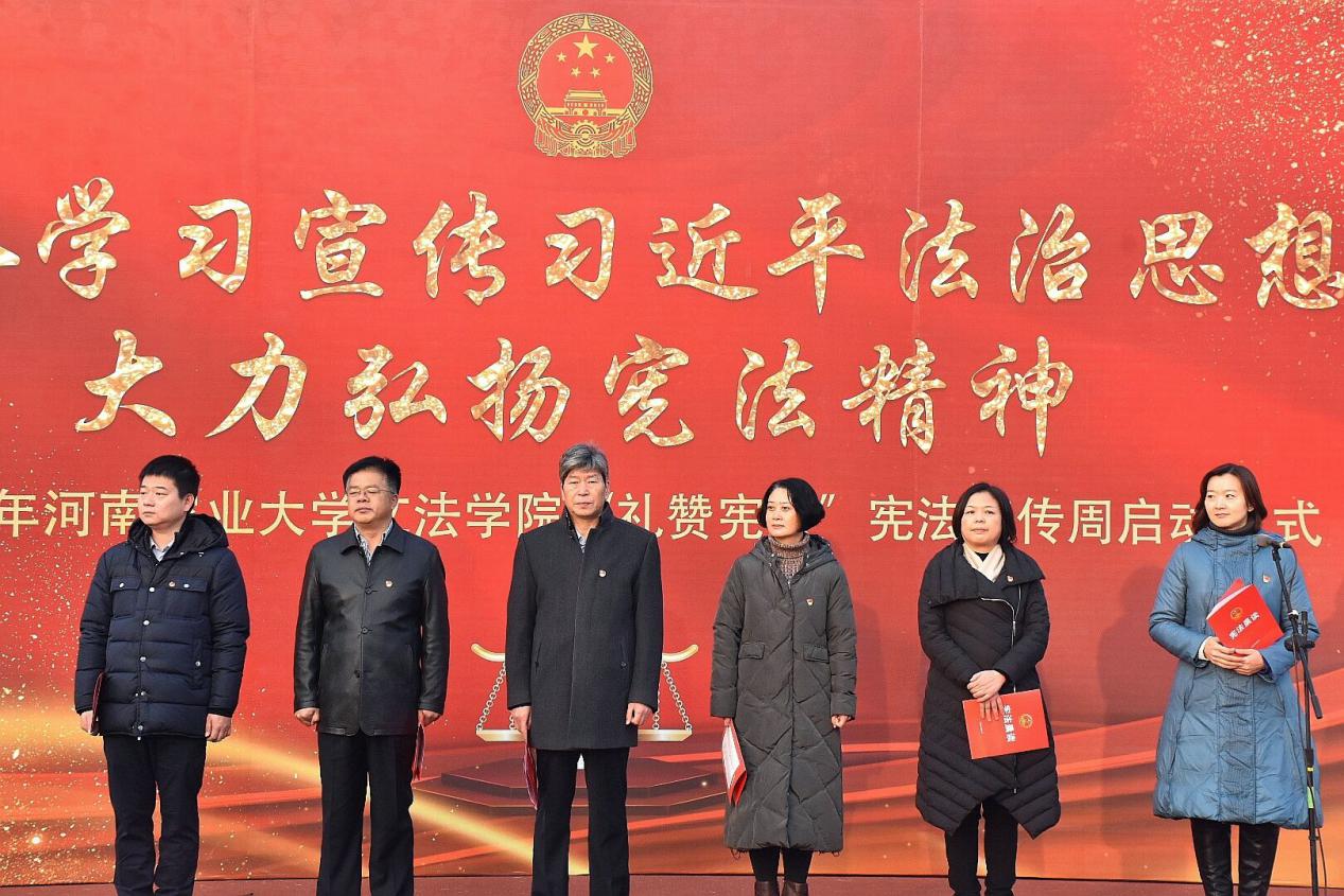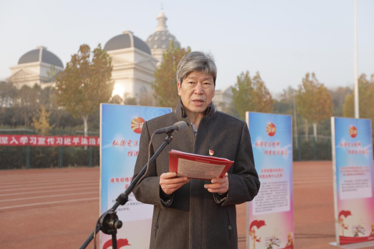 于龙子湖校区田径场举办了以“深入学习宣传习近平法治思想 大力弘扬宪法精神”为主题的“礼赞宪法”宪法宣传周启动仪式。副校长杨喜田出席启动仪式。校党委宣传部、学工部、法规办、校团委以及黄色网站