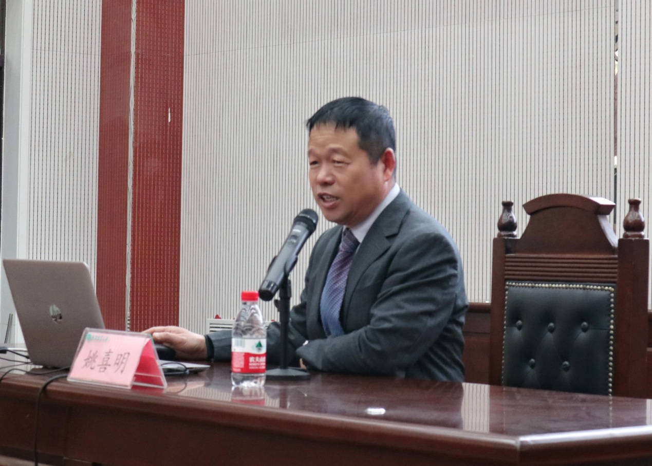于龙子湖校区模拟法庭举办主题为“百年未有之大变局下的汉语传播”的专题讲座。特别邀请世界汉语教学学会教师发展专业委员会会员、中国高教学会外国留学生教育管理分会常务理事、中国先秦研究会国学双语研究分会常任理事、上海大学国际教育学院院长姚喜明来院进行专题讲解,学院师生代表参与此次讲座。