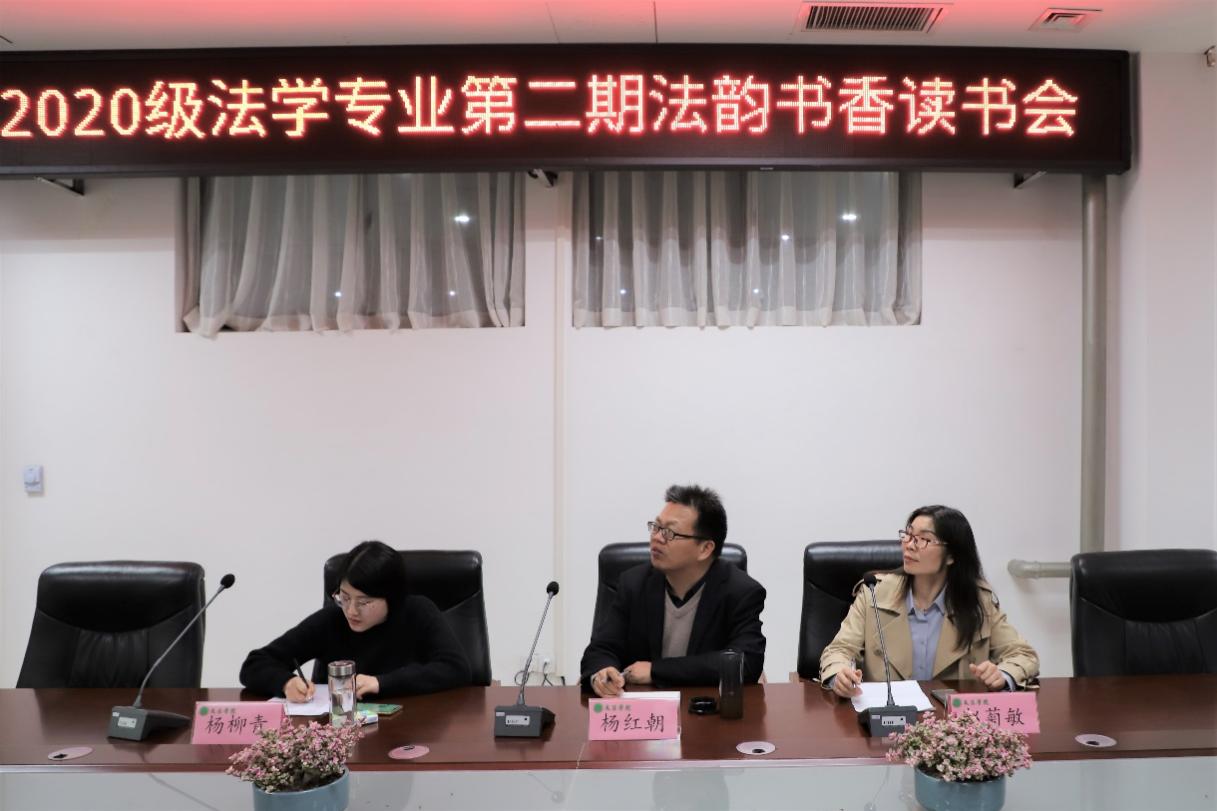 20级法学专业在院会议室举办2020级法学专业第二期“法韵书香”读书会。副院长杨红朝,法律系教师赵菊敏、杨柳青以及20级部分法学专业学生参加此次读书会,读书会由杨柳青老师主持。