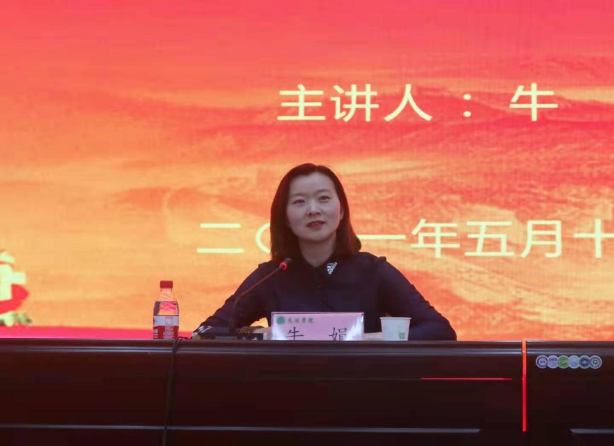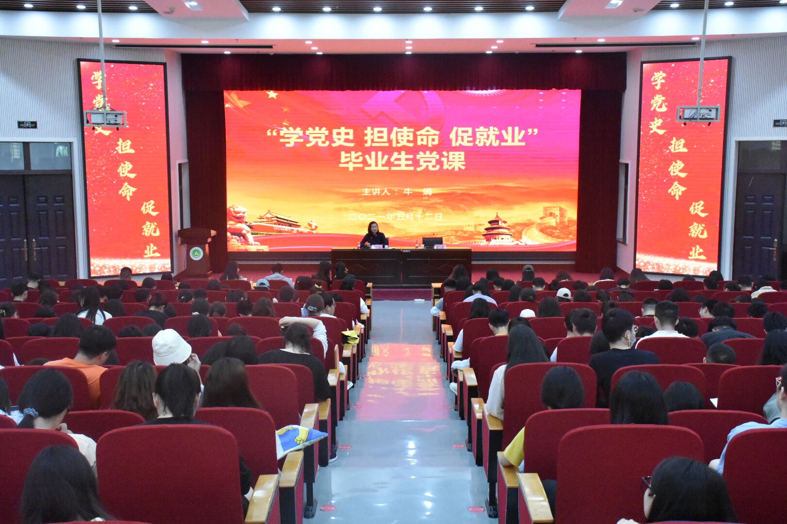 于龙子湖校区繁塔楼AB间二楼大教室1召开“学党史、担使命、促就业”毕业生党课活动。院党委书记牛娟为2021届毕业生上专题党课。