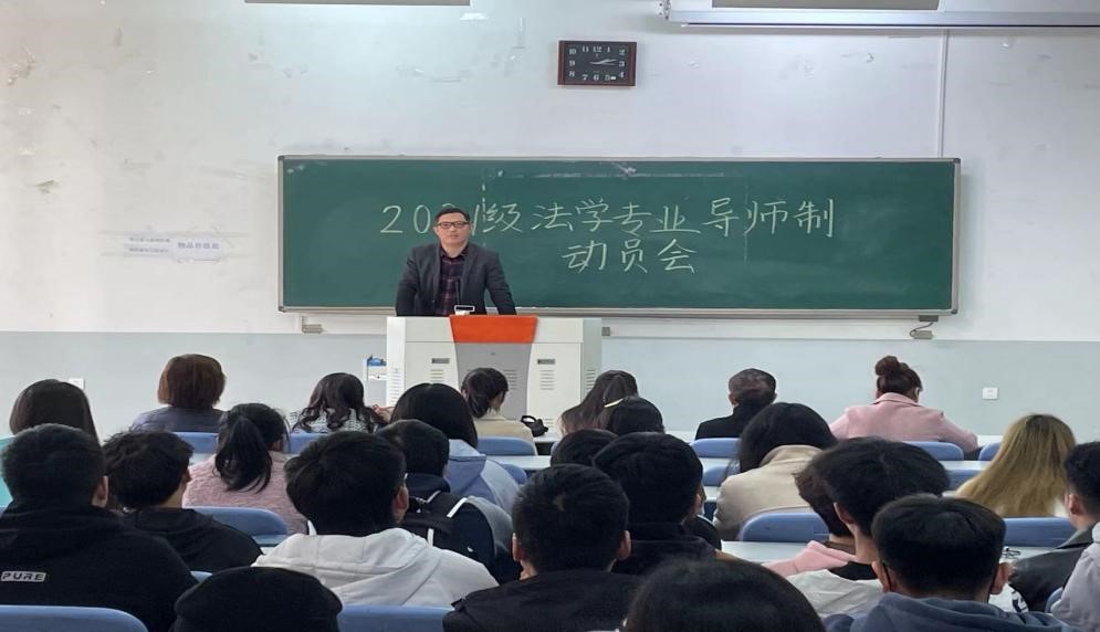2021年11月9日,法律系举行了2021级法学专业本科生导师制动员大会。副院长杨红朝、法律系全体教师和2021级法学专业全体学生参加大会,会议由法律系副主任赵菊敏主持。