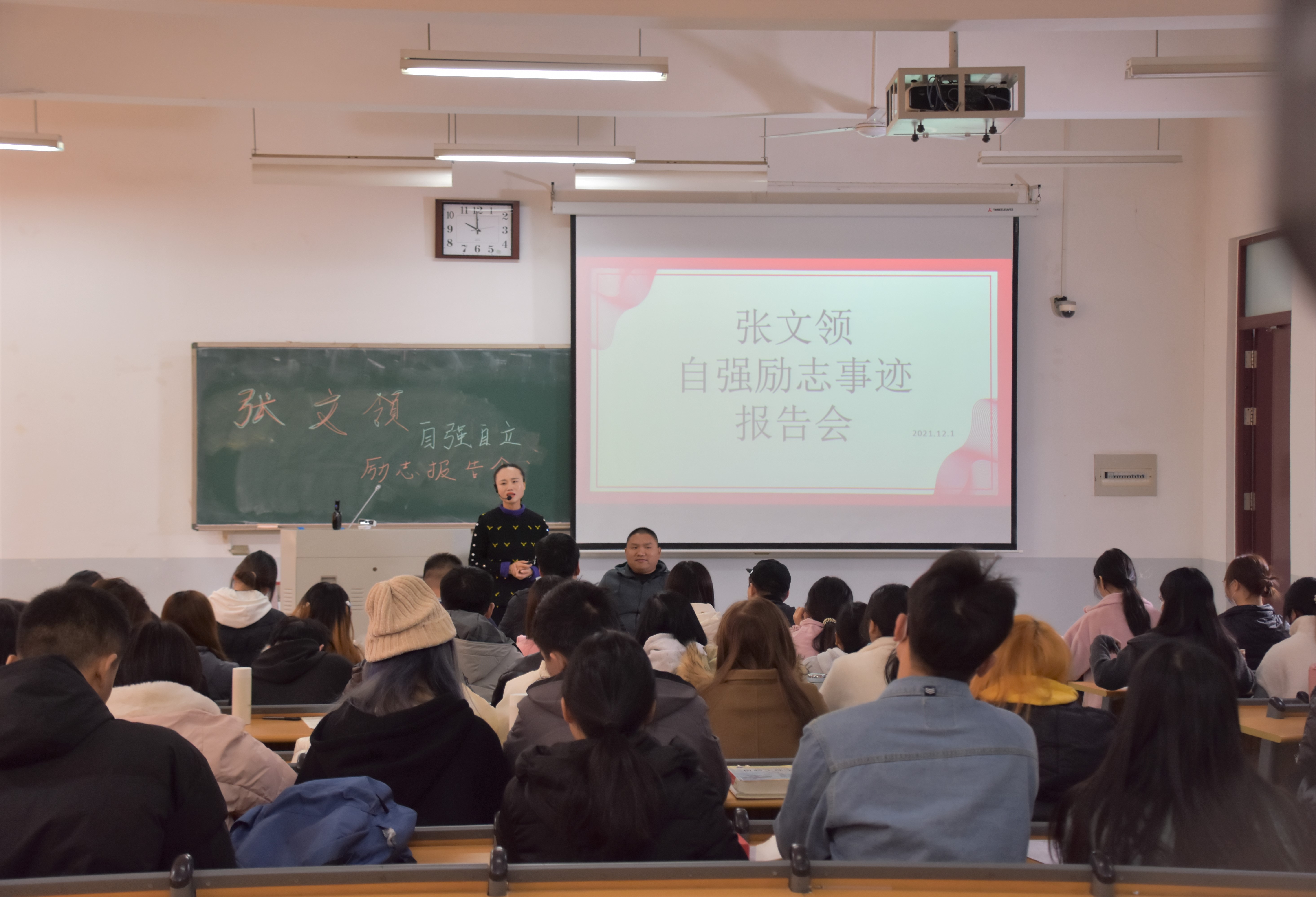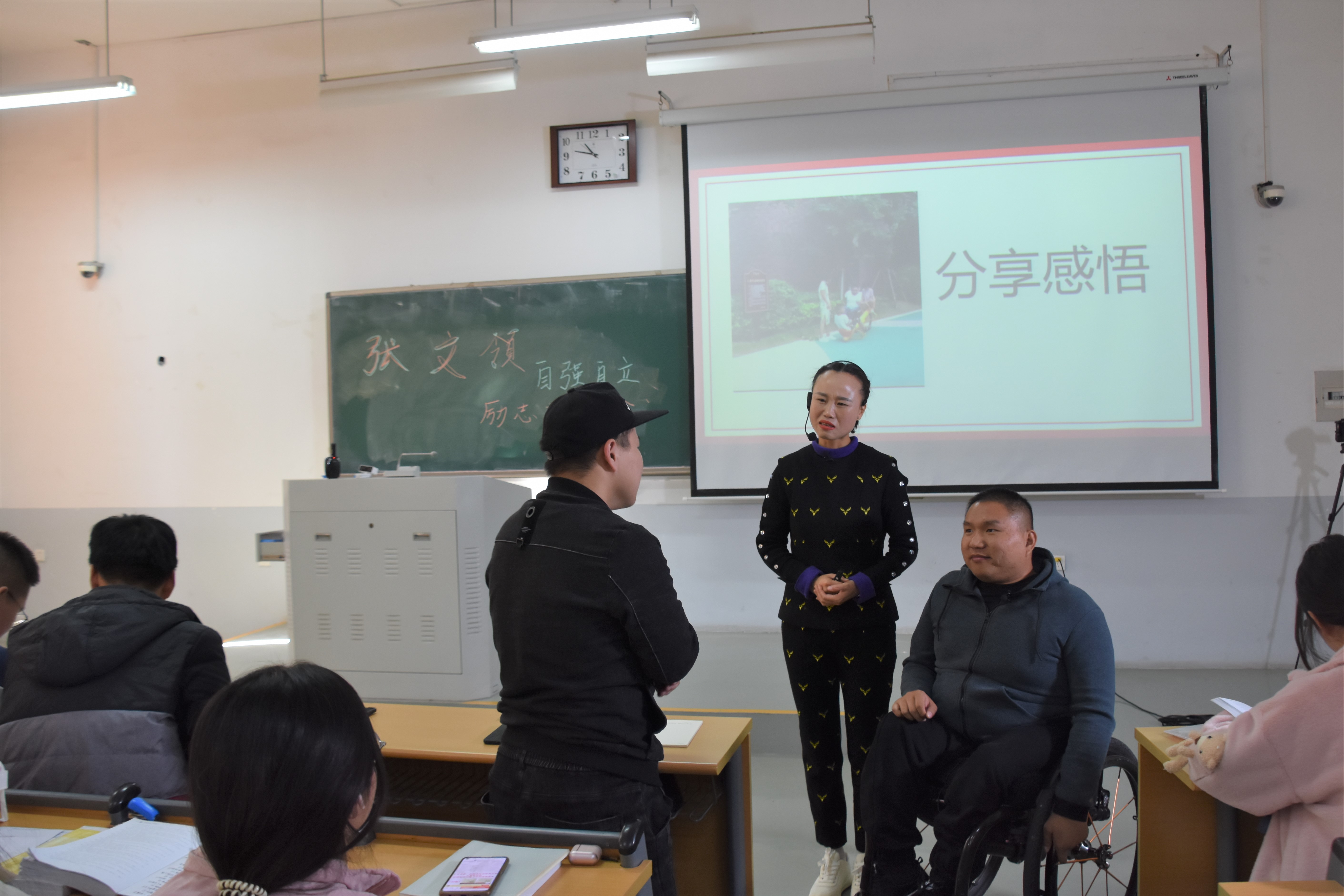 特邀请残疾人创业者张文领在繁塔楼E209教室开展“自立自强”励志报告会。报告会由行政管理系教师王妍主持,20级行政管理专业全体学生参加报告会。