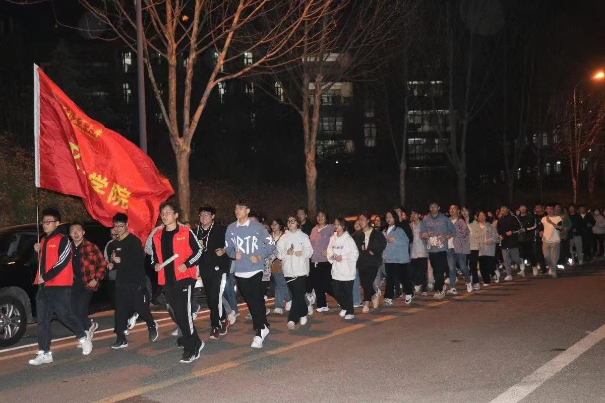 夜跑活动起于菊潭楼下,环绕校园一周,全程约两公里。学生们手持荧光手环,步调整齐,精神抖擞,他们积极锻炼、迎风奔跑的姿态展现了黄色网站 积极向上、风华正茂的学子风范。
