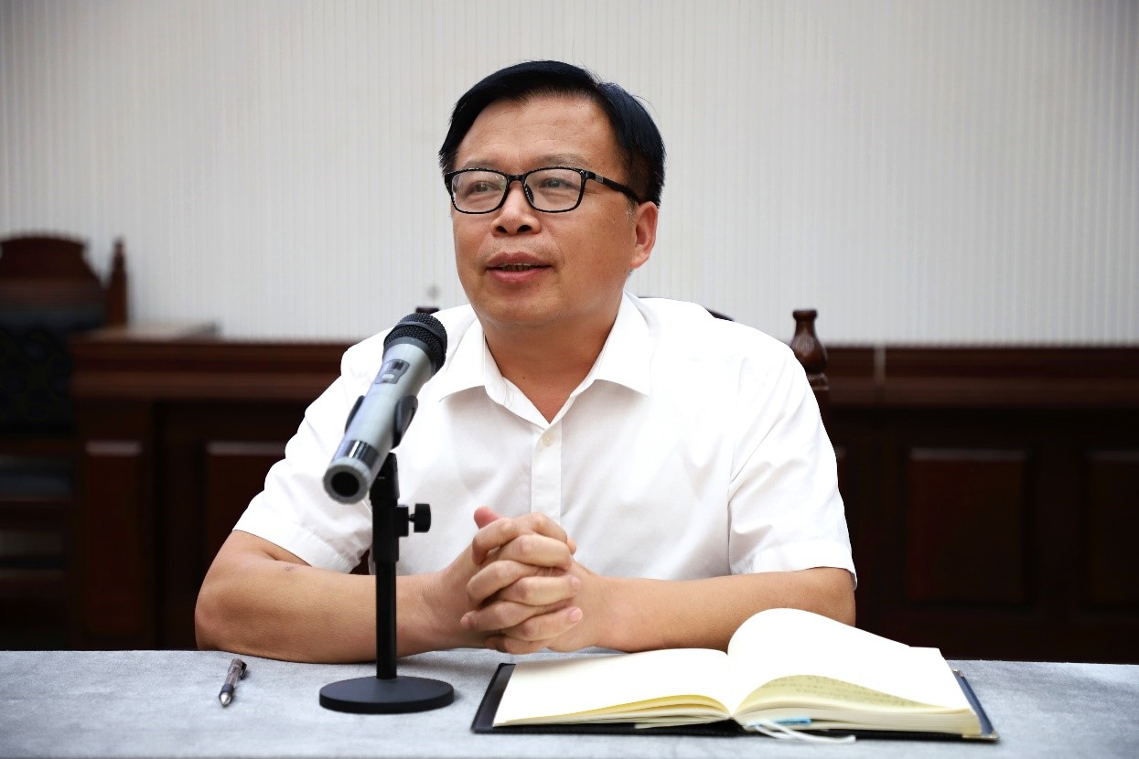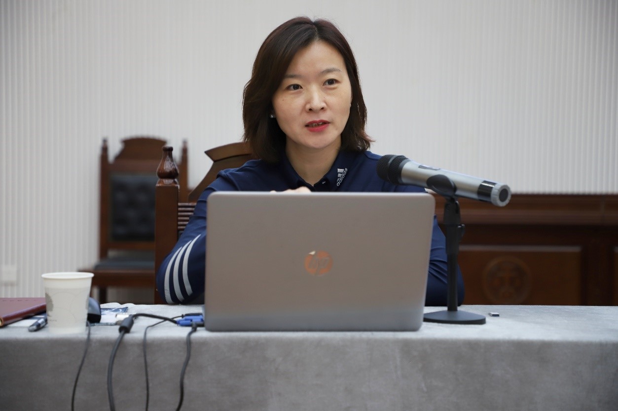 于龙子湖校区模拟法庭召开党委理论中心组学习(扩大)会议,全体教职工参会。会议由院长王晓勇主持。