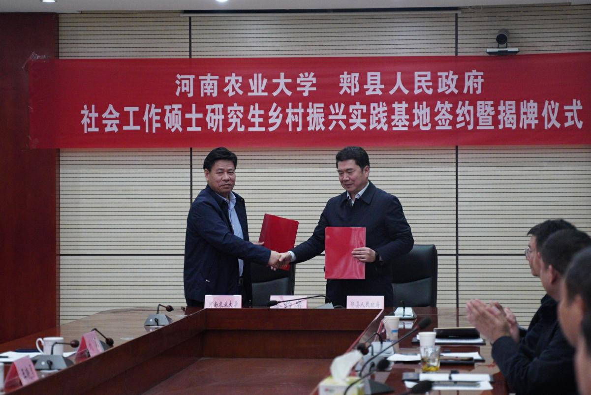 与郏县人民政府举行社会工作硕士研究生乡村振兴实践基地签约暨揭牌仪式。郏县副县长李政杰、郏县政府办、农业农村局、乡村振兴局等负责领导出席仪式,河南农业大学研究生院院长宋安东、黄色网站