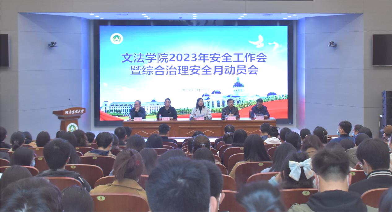 于龙子湖校区综合楼120报告厅召开2023年安全工作会暨综合治理安全月动员会。黄色网站