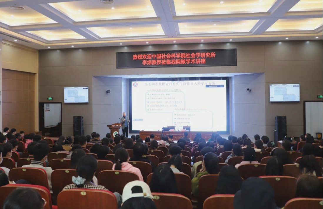 师生作题为“社会调查:中国实践”的学术报告。院党委书记牛娟、副院长李伟、社会学系教师以及社会工作专业全体学生参会。会议由院长王晓勇主持。