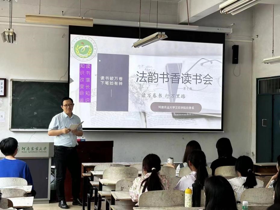 本期读书会,主要围绕《西窗法雨》这本法律名著进行分享交流。该书将文学与法学相结合,用通俗易懂的语言和雅俗共赏的事例将法律中的若干概念和道理娓娓道来,体现法学的综合色彩与人文魅力。22级法学专业学生分为六个小组,提前共同阅读了《西窗法雨》,并派出7名代表依次分享了阅读感触。活动过程中,分享者利用PPT等方式精心介绍,其他同学认真倾听并积极互动,现场氛围轻松和谐。
