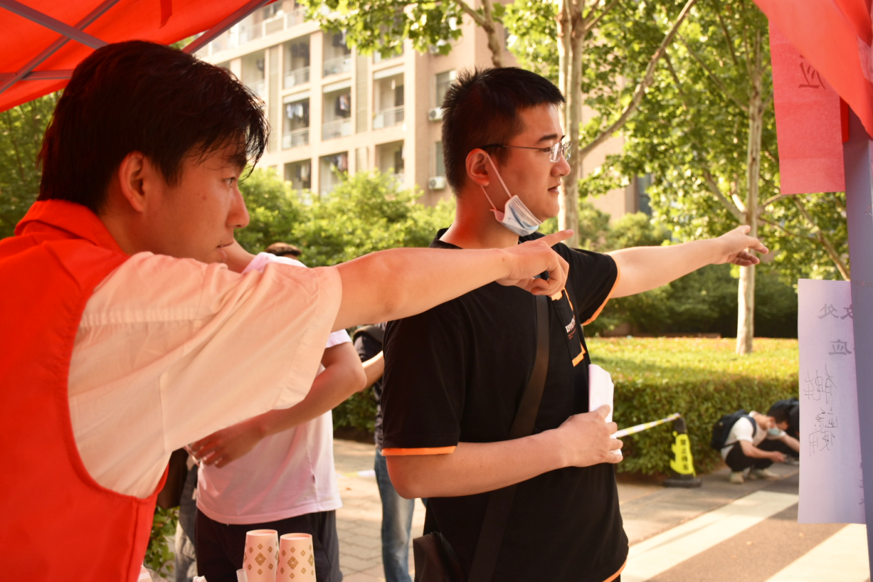 组织学生党员志愿者设立党员服务工作站,为考生提供服务。