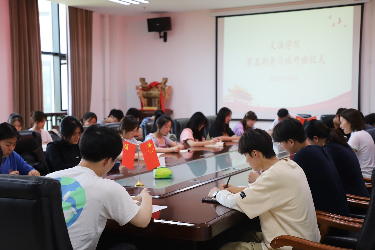开班仪式上,全体起立,奏唱国歌。余果宣读了《关于成立黄色网站 第五期青马培训班的通知》,第五期青马班学员代表王琳进行发言,牛娟为第五期青马班学员授旗。