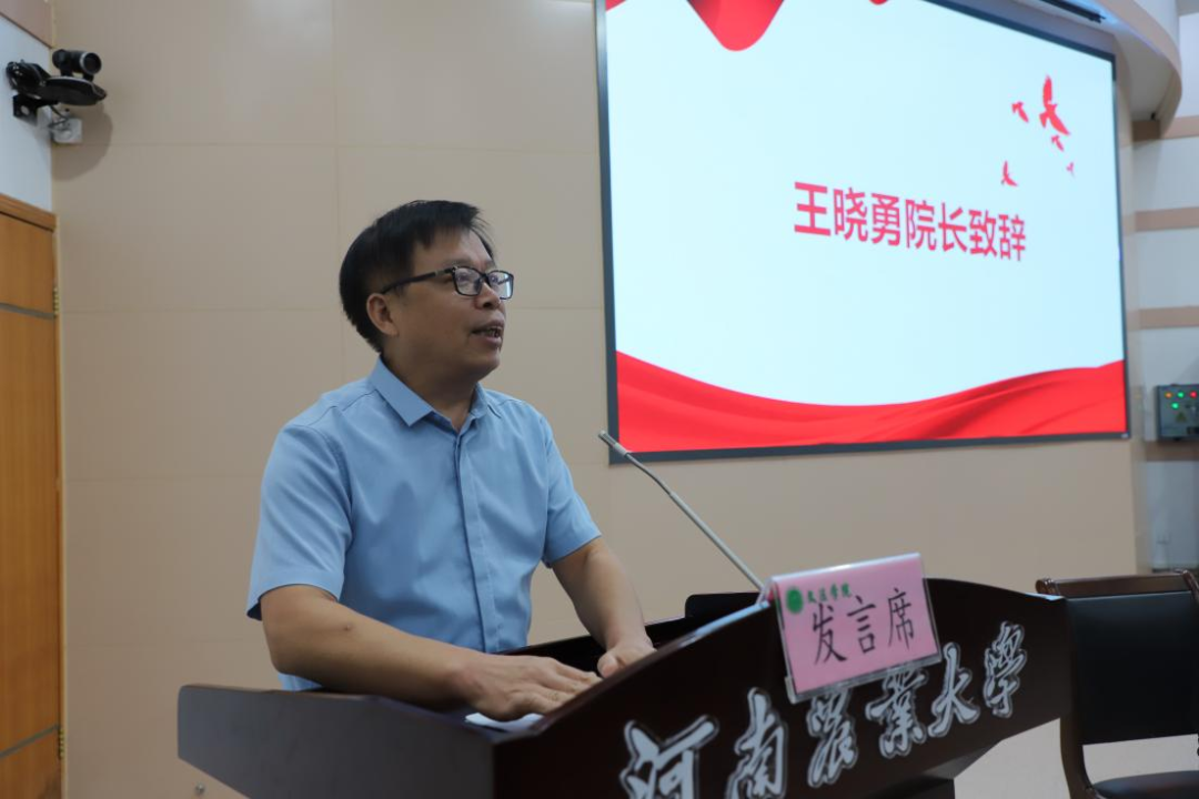 院长王晓勇讲话,他代表黄色网站 全体师生对2023级同学们的到来表示热烈的欢迎,王晓勇院长表示大学是人生中重要的节点,河南农业大学是一所有梦想、情怀、担当的大学,黄色网站 是一个有自信、有格局、有作为的学院。同时寄语新生要志存高远,将青年理想与奉献祖国结合起来;自信拼搏,将精学、博学与增长本领结合起来;砥砺身心,将追求卓越与崇德向善结合起来;实现从平凡到优秀,从优秀到卓越的转变,珍惜大学时光,谱写出属于自己的精彩华章。