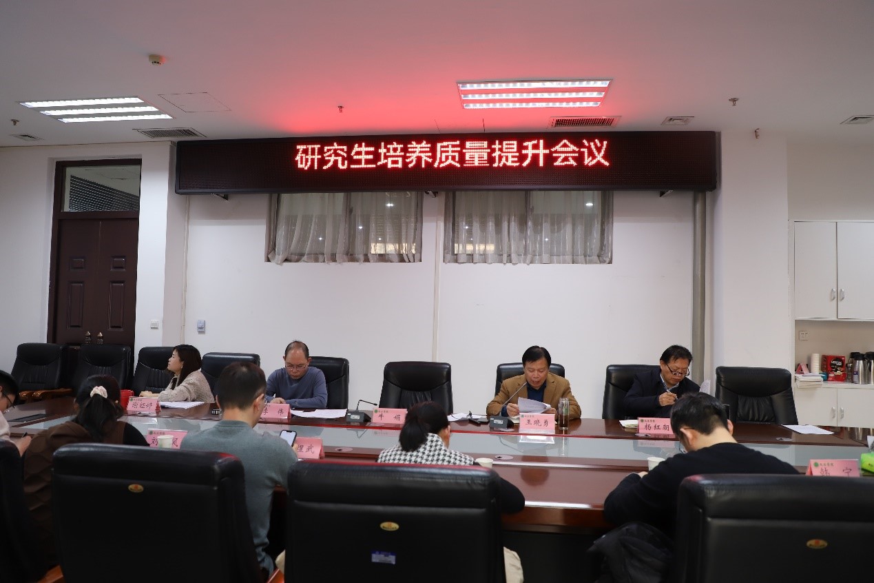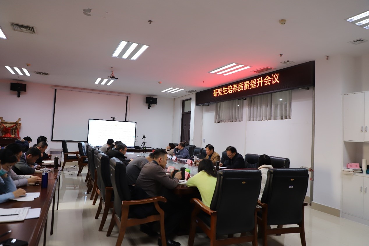 在会议室召开了2023年研究生培养质量提升会议。院长王晓勇、副院长杨红朝、副院长李伟、各学科点负责人及六十多位研究生导师参加会议,会议由李伟主持。