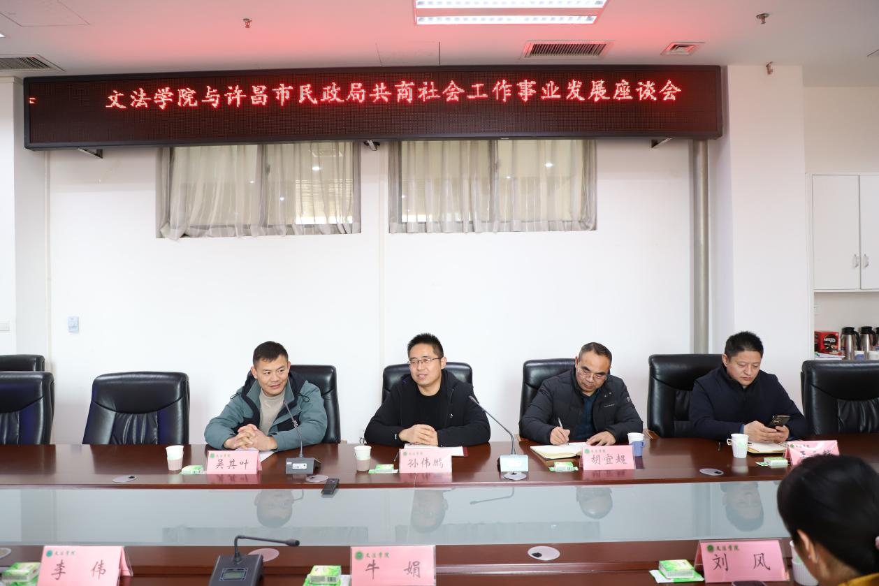 1月4日,在学院310会议室,许昌市民政局社会组织管理和慈善事业促进科科长孙伟鹏,许昌长葛市民政局副局长胡宜超,许昌市建安区民政局社会工作与慈善科科长吴其叶,许昌市社会工作行业协会秘书长王云辉理事长与黄色网站