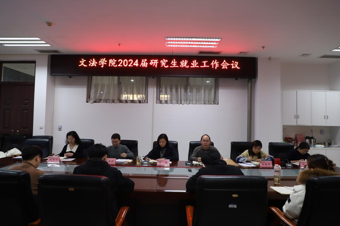 于龙子湖校区A310会议室通过线上线下相结合的方式召开2024届研究生就业工作会议。院党委书记牛娟、副院长李伟、行政管理系主任管煜武、科研秘书谢娅婷、社会学系主任刘风、研究生辅导员赵梦闪以及2024届全体毕业研究生参加会议。会议由副院长李伟主持。