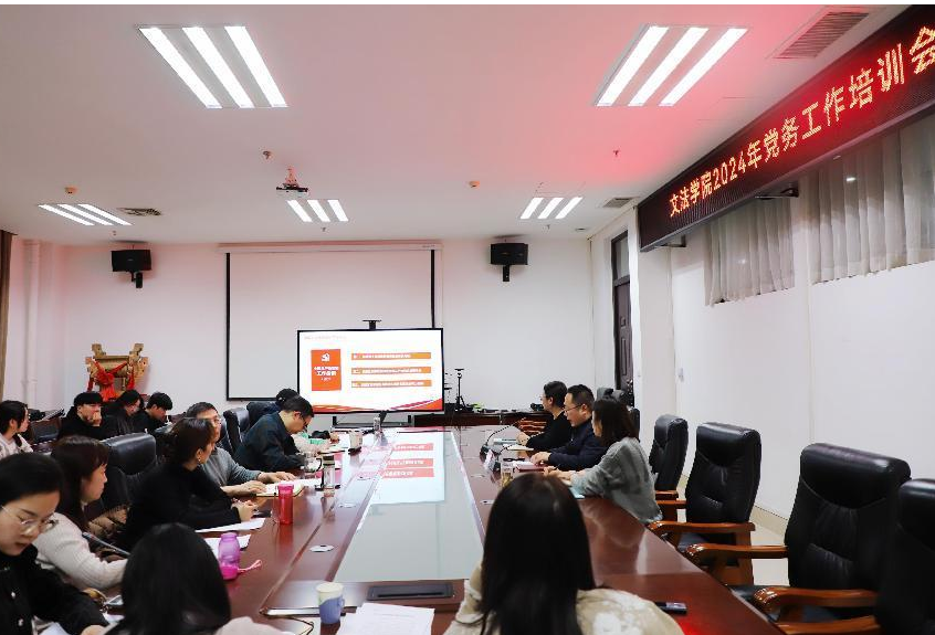 邀请校党委组织部组织科科长王肖肖开展党务工作培训,学院全体党支部委员参加培训,培训会由学院党委书记牛娟主持。