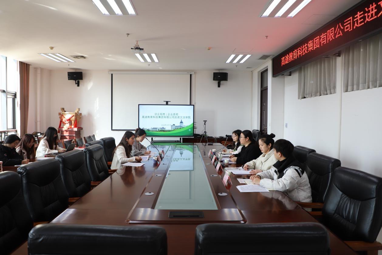 于3月7日邀请高途教育科技有限公司进校园开展交流活动。学院党委副书记余果、团委副书记赵梦闪、辅导员盛戈和辅导员王卓锐及部分毕业生代表参加座谈会,高途教育科技有限公司代表校招HR资深专员时盼盼和杨倩出席活动。