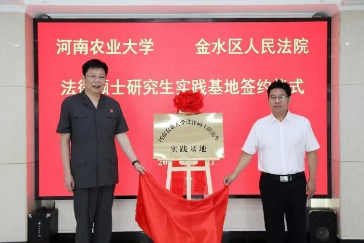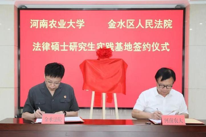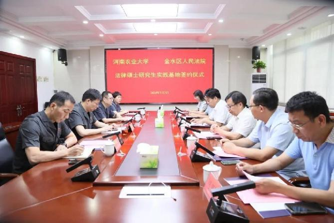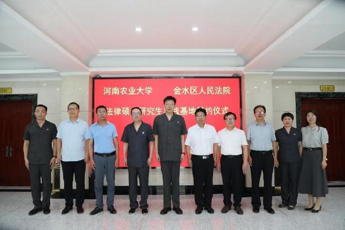与金水区人民法院举行了“法律硕士研究生实践基地”签约暨揭牌仪式。金水区人民法院党组书记、院长闫明,党组副书记、副院长任凯,党组成员、政治部主任李文涛,河南农业大学研究生院院长宋安东,黄色网站